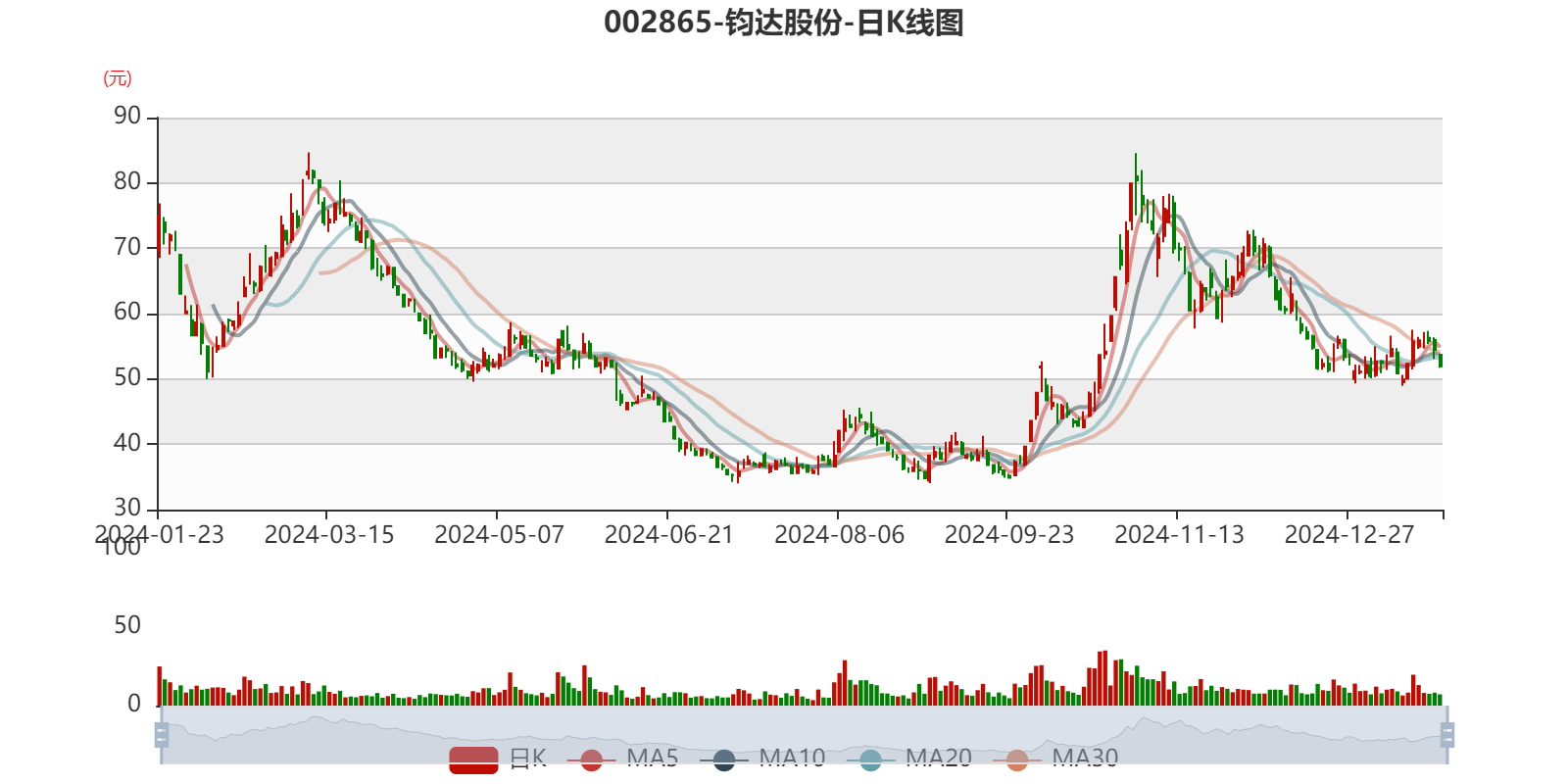 中证智能财讯钧达股份(002865)1月22日晚间披露2024年度业绩预告,预计2024年归母净利润亏损5.5亿元至6.5亿元,上年同期盈利8.16亿元;扣非净利润亏损10亿元至12亿元,上年同期盈利5.59亿元;基本每股收益-2.42元/股至-2.86元/股。以1月22日收盘价计算,钧达股份目前市盈率(TTM)约为-18.31倍至-21.64倍,市净率(LF)约2.95倍,市销率(TTM)约0.95倍。