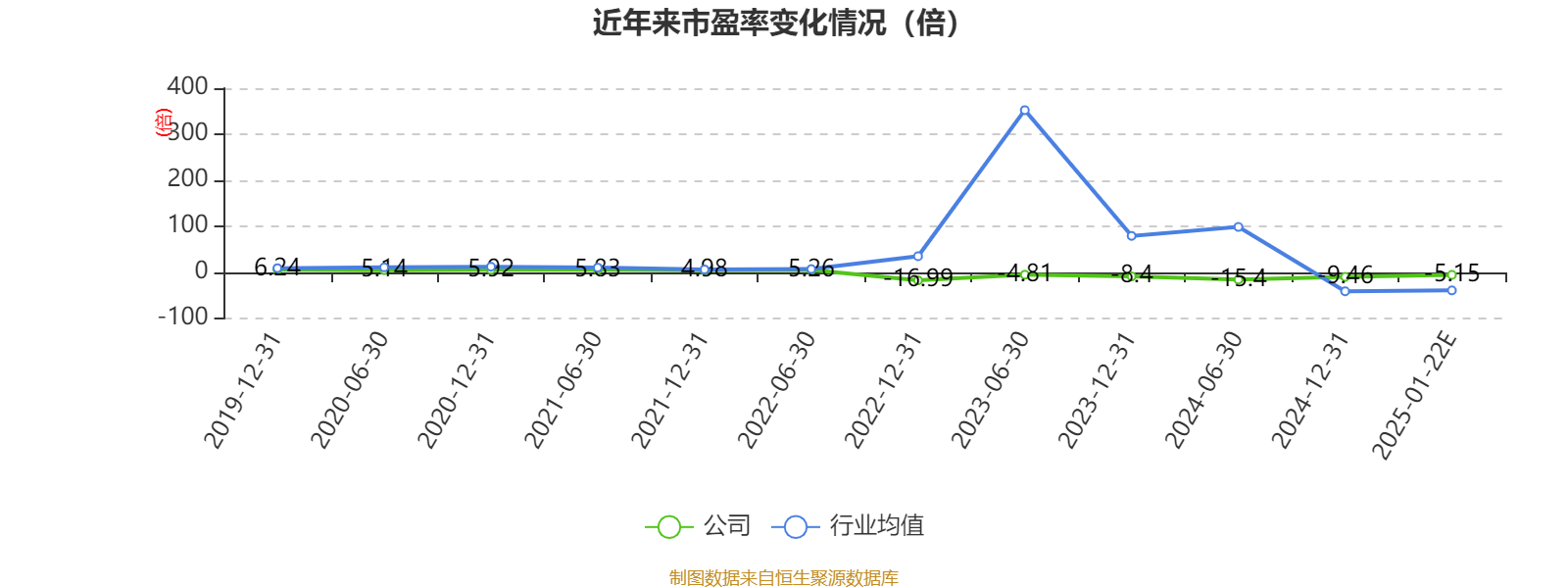 中证智能财讯中南股份(000717)1月22日晚间披露2024年度业绩预告,预计2024年归母净利润亏损11亿元至13亿元,上年同期盈利4903万元;扣非净利润亏损11.5亿元至13.5亿元,上年同期亏损2.34亿元;基本每股收益-0.4538元/股至-0.5363元/股。以1月22日收盘价计算,中南股份目前市盈率(TTM)约为-4.72倍至-5.57倍,市净率(LF)约0.74倍,市销率(TTM)约0.19倍。